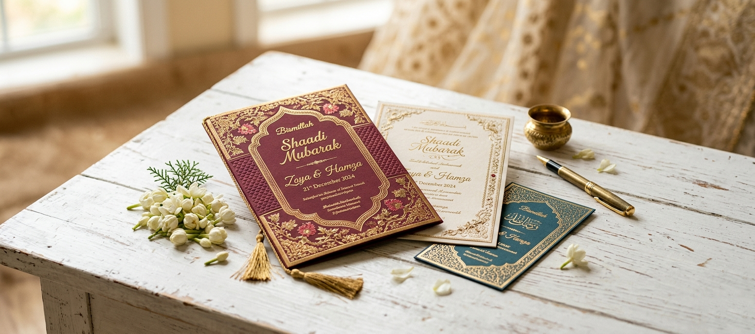 At Yamin Yasin, your wedding begins with a lasting first impression — the invitation. Since 2005, we have crafted elegant designs using foiling, UV, die-cutting, and premium printing to create invitations that beautifully reflect your special day.